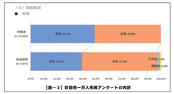 アンケート調査は2024年に実施され無作為抽出により1万人に送付された。有効回答数は3,472名(34.7%)である[図-2]。いわゆる不活性市民は未回答者の中に存在していると考えられる。